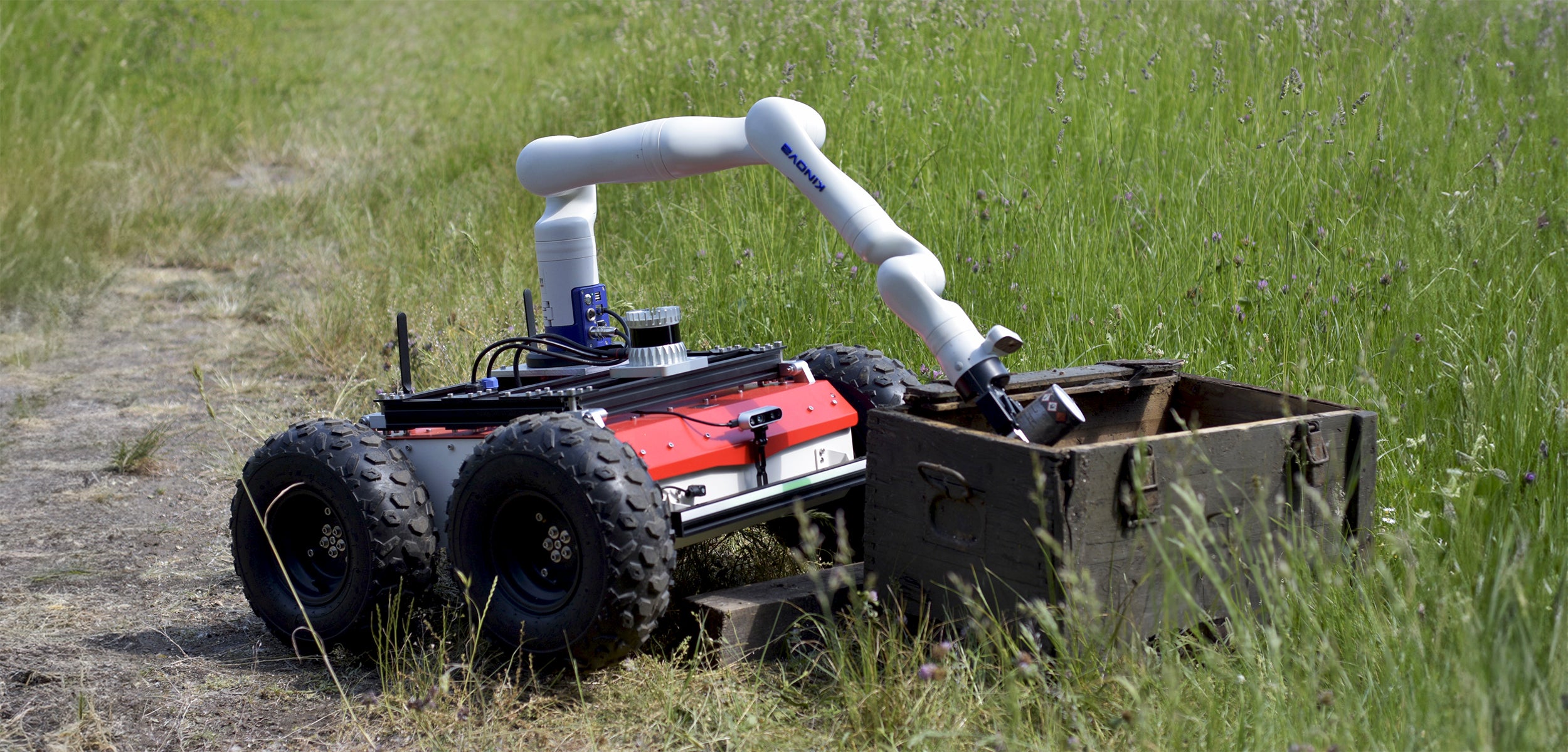 We have used Panther in the Rock-Farm project in our robotic solution that performs masonry work on rock walls. The greatest thing about Panther is how well it fits to external components. Thanks to its high payload capacity and powerful battery, it works well as a mobile manipulation platform and can operate the Yaskawa DT 10 robotic arm for 24h. Panther's dimensions make it ideal for construction sites, where it can cooperate directly with operators without posing any safety threats.